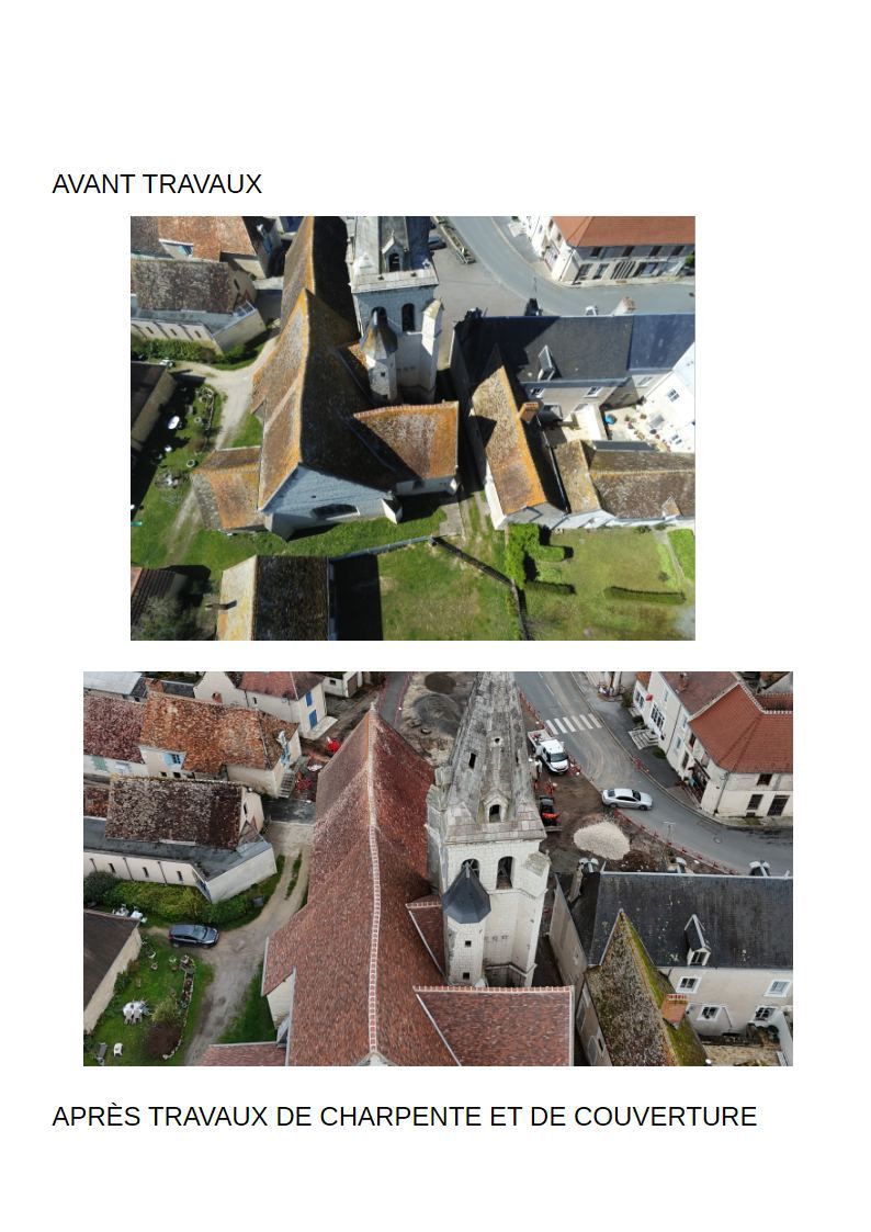 Avant/Après travaux de charpente et couverture - Eglise de Martizay
